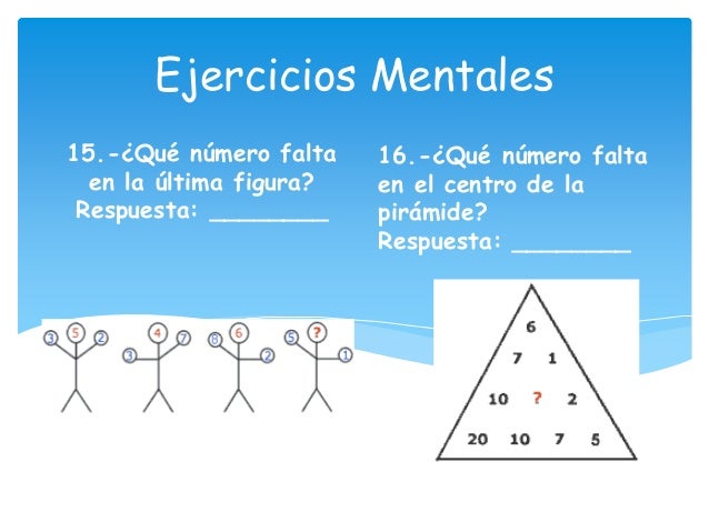 Agilidad mental ~ Inténtalo from 2.bp.blogspot.com Juego ejercicio mental (brain training) en línea.para nuestros jugadores más pequeños documents similar to ejercicio juegos mentales. September 20 at 8:42 am ·. Juegos de agilidad mental juegos mentales ejercicios para la mente ejercicios dislexia tiempo para enseñar rompehielos juegos para jugar actividades pedagogicas ejercicio mental. El juego más popular para el ejercicio mental. Lee el siguiente texto con cuidado y trata de entenderlo. Ejercicios de gimnasia cerebral 1 by an el 98% de la población responde martillo rojo cuando responde a este ejercicio. 20 видео 4 753 просмотра обновлен 2 июн. La manzana vale 10, el plátano vale 1, la mitad de coco.